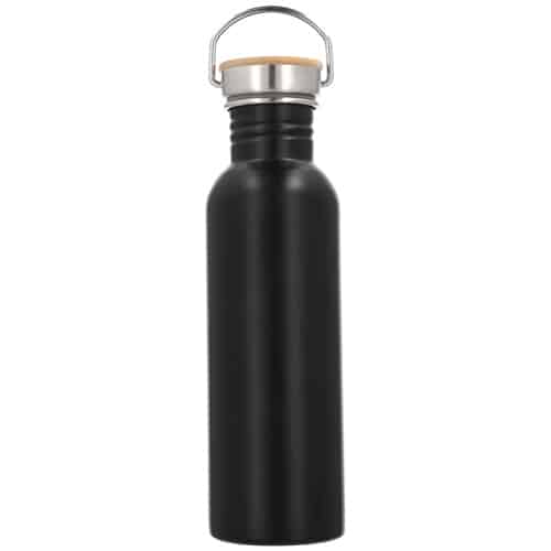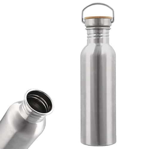 Cilindro de acero inoxidable con detalle de bambú en tapa.